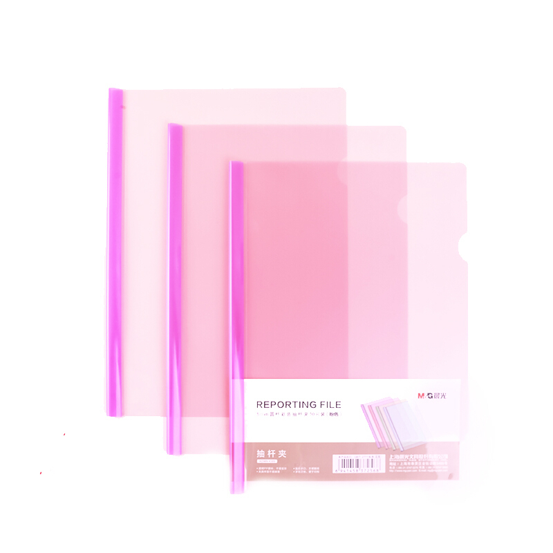 • 晨光ADMN4389 A4/5mm粉色圆杆抽杆夹 办公报告夹拉杆夹 资料整理收纳文件夹