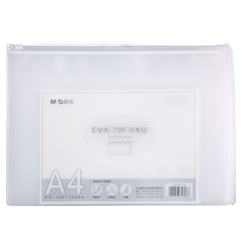• 晨光ADMN4280 A4/EVA磨砂拉边袋 防水文件袋 文件分类整理收纳袋资料袋 10只装