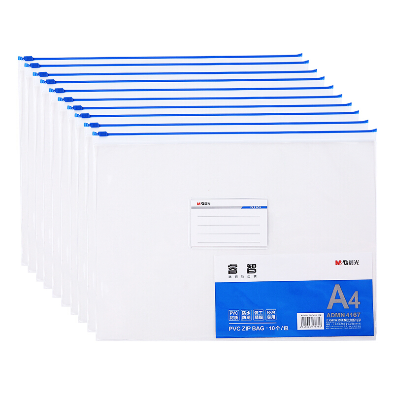 晨光(M&G)文具A4透明拉边袋拉链袋 文件袋 睿智系列资料袋文件整理收纳袋 10个装ADMN4167