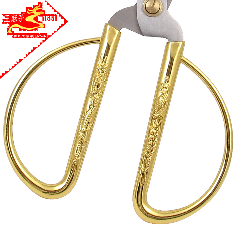王麻子 龙凤剪刀家用日常用剪刀 婚庆剪刀办公剪 剪彩剪刀 JD21-1