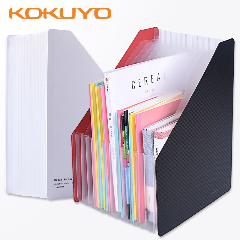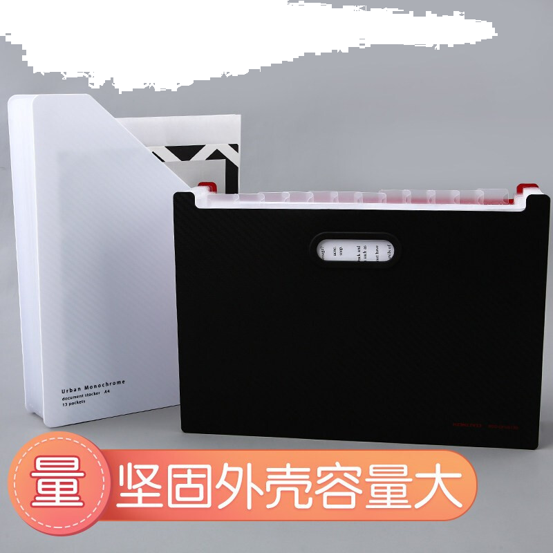 • 国誉DFUS135D 多层竖版文件夹塑料手提试卷大容量资料册商务办公收纳盒 黑色12层13袋