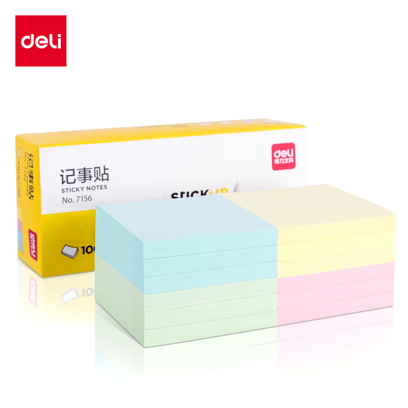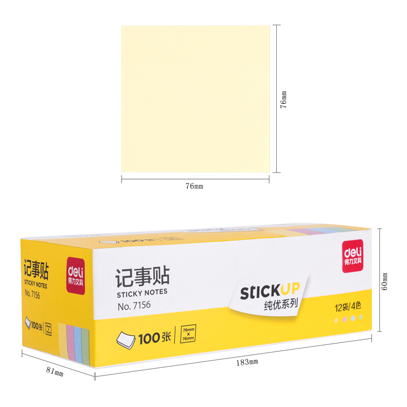 得力(deli)12本彩色便利贴粘性便签纸 76*76mm备忘留言纸/记事贴/N次贴办公用品 7156