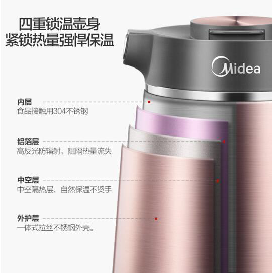 • 美的MK-VJ1502 电水壶热水壶电热水壶304不锈钢暖水壶控温保温水壶开水壶煮水壶烧水壶