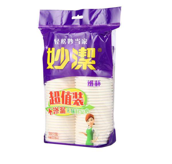 妙洁(MIAOJIE) 一次性纸杯50只装228ML加厚型不破不漏家用商务用杯子水杯