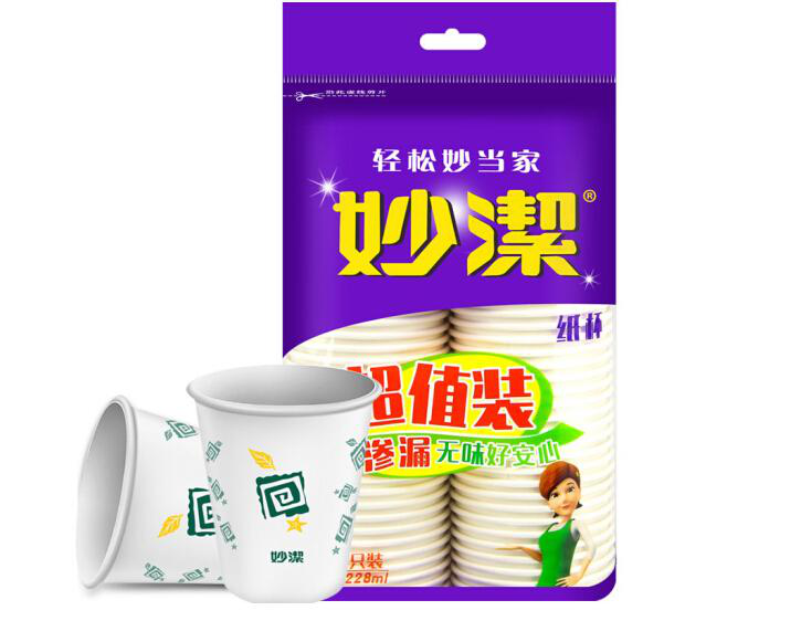 • 妙洁 一次性纸杯50只装228ML加厚型不破不漏家用商务用杯子水杯