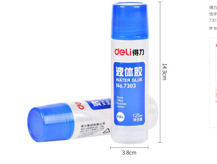 得力(deli)液体胶水 强粘性手工胶水 办公用品 7303(125ml液体胶水) 单瓶装