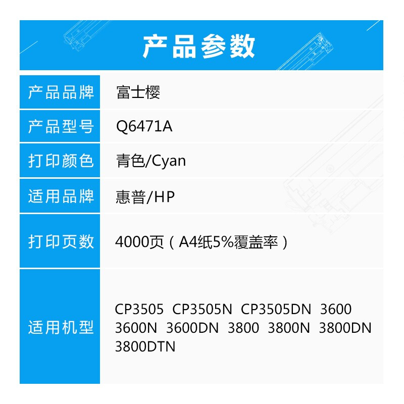 - 富士樱 Q6471A 青色硒鼓 HP502A蓝色适用惠普 CP3505 3505N 3505DN 3600 3600N 3600DN 3800 3800N/DN/DTN