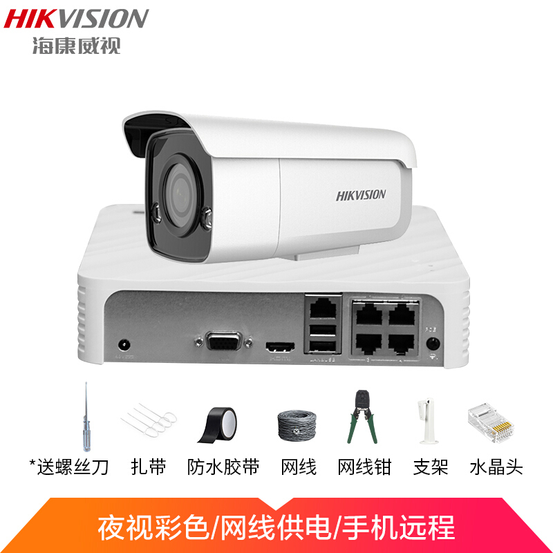 • 海康威视摄像头监控设备套装 全彩1路带2T硬盘 200万高清1080P日夜监控全彩画面 手机远程POE供电3T27EWD-L