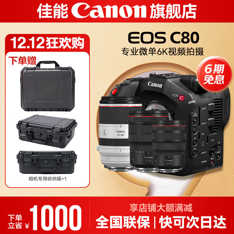 佳能C80专业摄像机 6K超高清数字电影摄影机 专业录像机 直播专业数码新闻采访录像机 EOS C80+RF金三元【大师摄影顶配】 官方标配【赠微单相机/镜头防潮收纳箱】