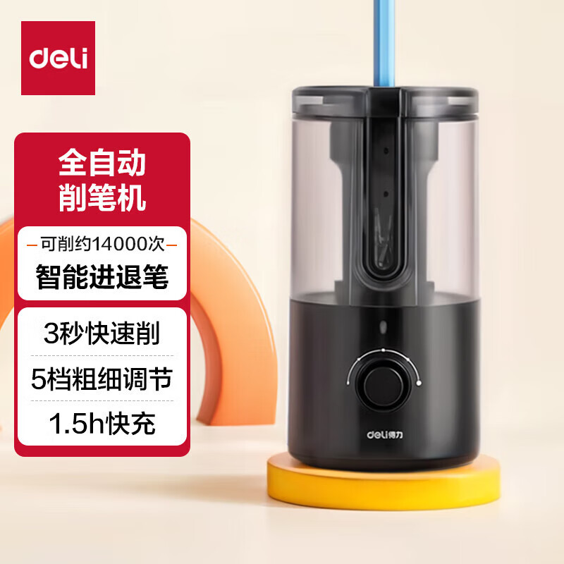 • 得力 全自动削笔机卷笔刀可充电锂电池5档粗细可调8mm削笔器开学考试礼物 黑色VA8-1