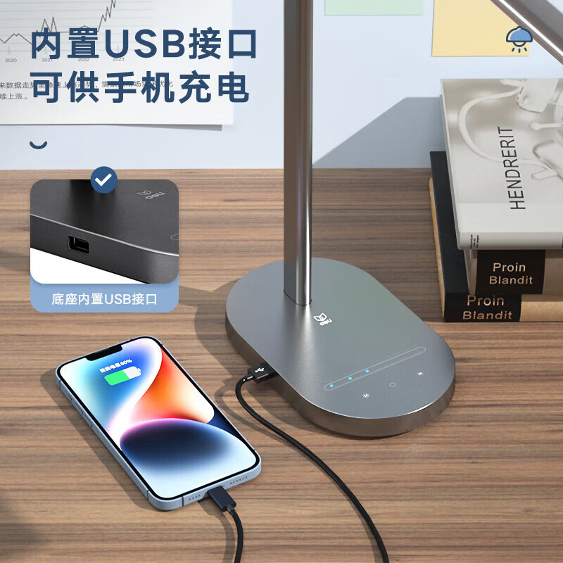 • 得力(deli) 商务可折叠台灯触控六档色温三档亮度 270°转向定时提醒台灯LF201