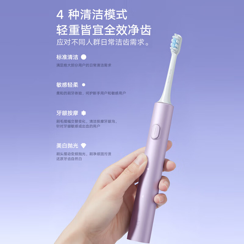 • 米家小米电动牙刷T302成人/学生 4种净齿模式 150天续航 4支刷头