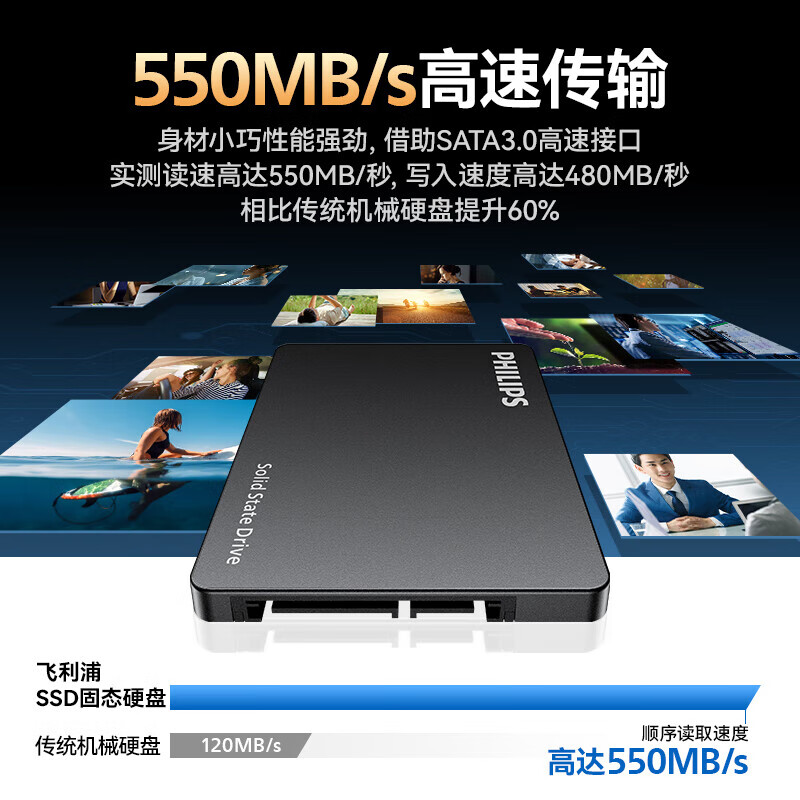 • 飞利浦 SSD固态硬盘550M/S SATA3.0接口 笔记本台式机通用SATA3.0高速全新读速 曜黑色550M/S 【256G】SATA3.0