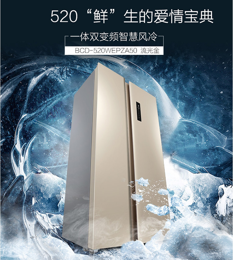 • TCL BCD-520WEPZA50 520升 双变频对开门冰箱 风冷无霜 智慧摆风 制冷均匀双开门电冰箱 电脑控温(流光金)