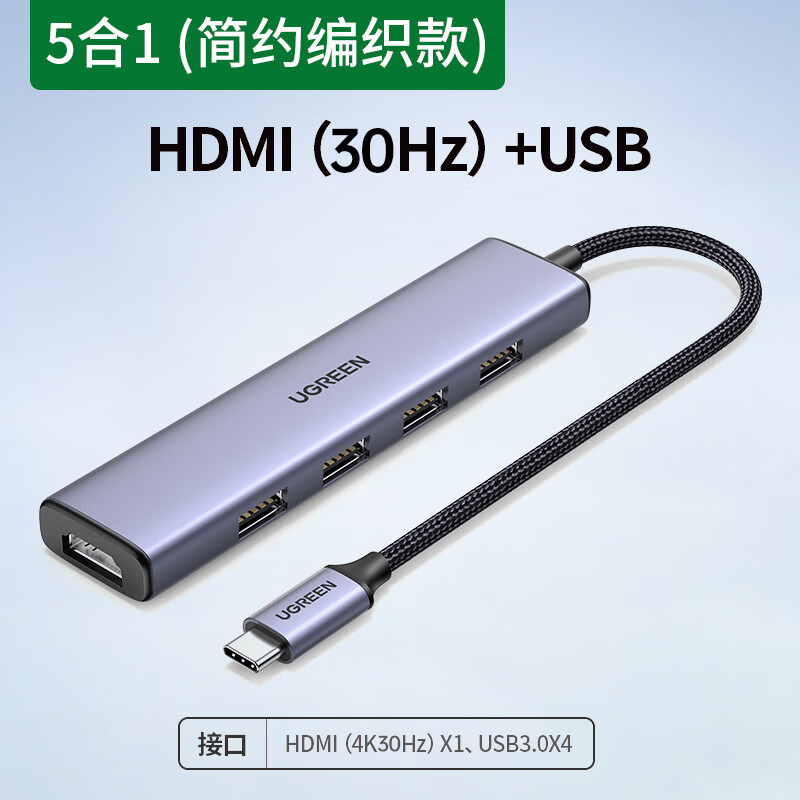 • 绿联Type-C扩展坞USB3.0四口分线器90370