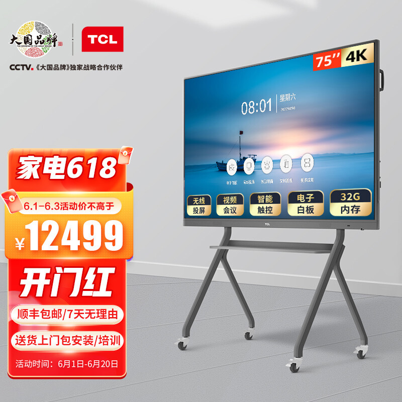 - TCL会议平板电视v20 75英寸4K超清大屏商用办公投影远程视频会议交互式触摸智能教学电子白板一体机 L75V20P