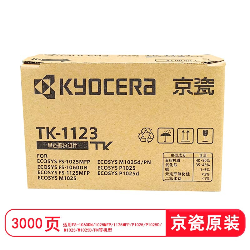 京瓷TK-1123 黑色墨粉 适用于1060DN/1025/1125MFP打印一体机墨粉盒