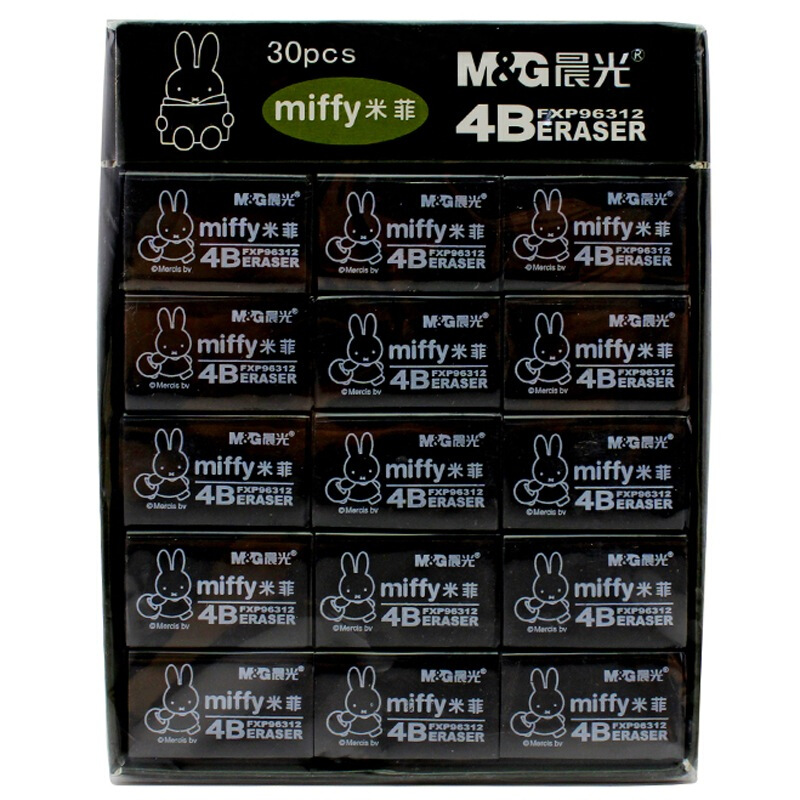 • 晨光FXP96312 文具4B黑色大号橡皮 学生美术绘图考试橡皮 米菲系列可爱橡皮擦 30块装