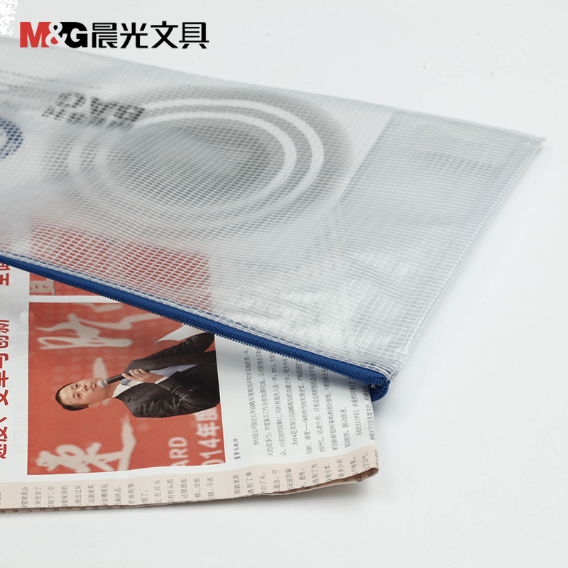 晨光ADM94507 B5文件袋防水拉链袋pvc网格网纹袋票据资料袋