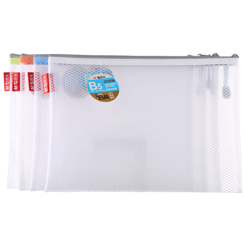 晨光ADM95077 B5文件袋防水拉链袋pvc网格网纹袋票据资料袋