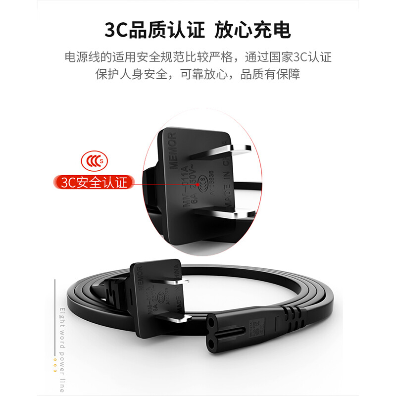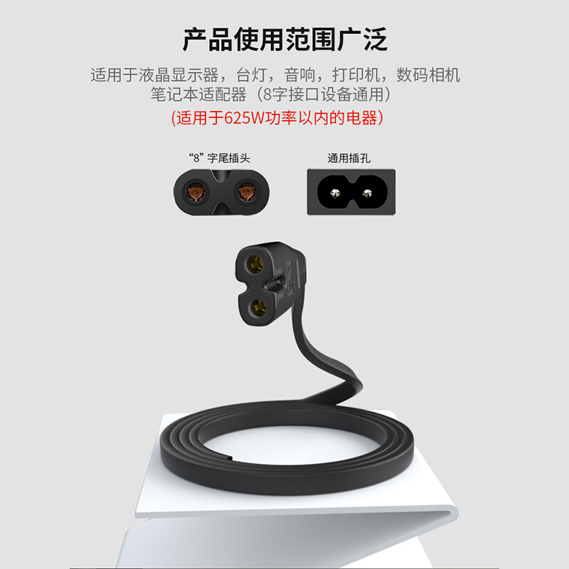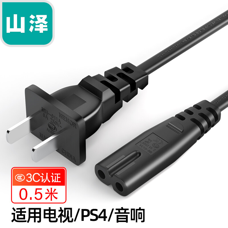 • 山泽 国标2两孔八8字尾电源线 0.5米 CD-05