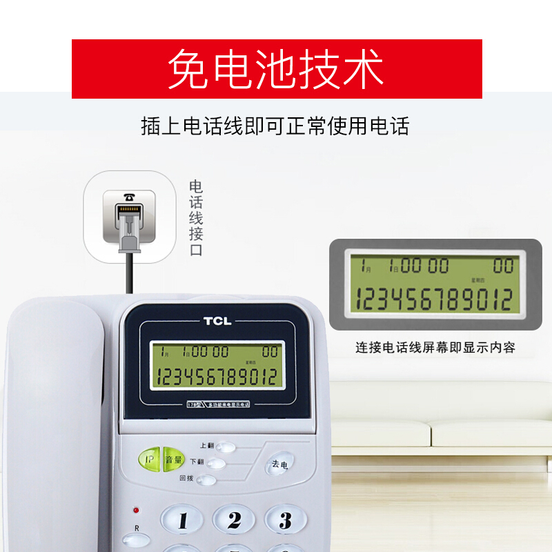 • TCL HCD868(17B)TSD 电话机座机 固定电话 办公家用 来电显示 免电池 屏幕翻盖 (灰白色)