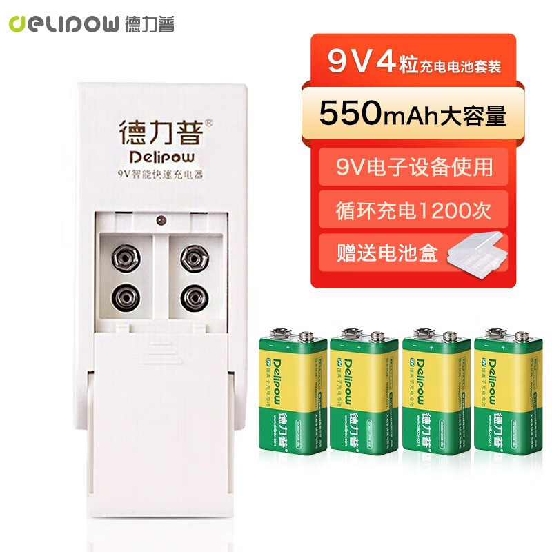 德力普(Delipow) 充电电池 9V锂电池6F22大容量550mAh充电套装万用表话筒麦克风电池 2槽充电器+4节550毫安锂电池