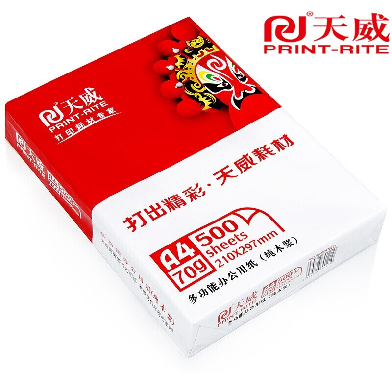• 天威(PrintRite)A4复印纸70g 500张/包 一箱装(共8包)