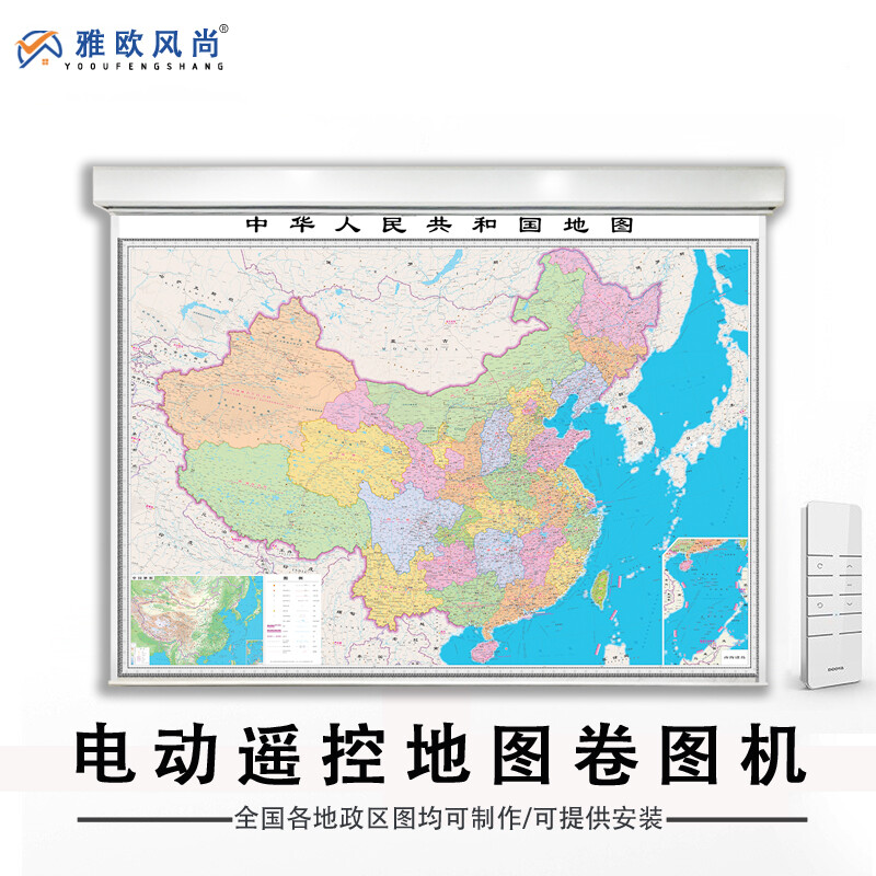 • 电动卷图机高清遥控办公室升降机自动单多幅升降地图挂图机悬挂式地图机YOFS-S1(不含地图)2米宽 1幅