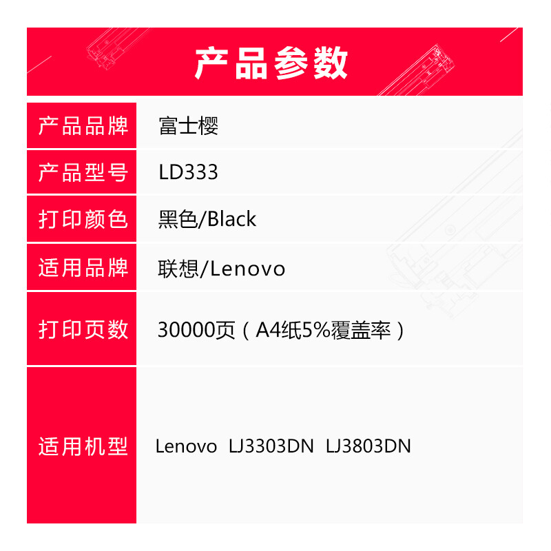 • 富士樱 LD333 硒鼓组件适用联想 LJ3303DN LJ3803DN LT333墨粉盒