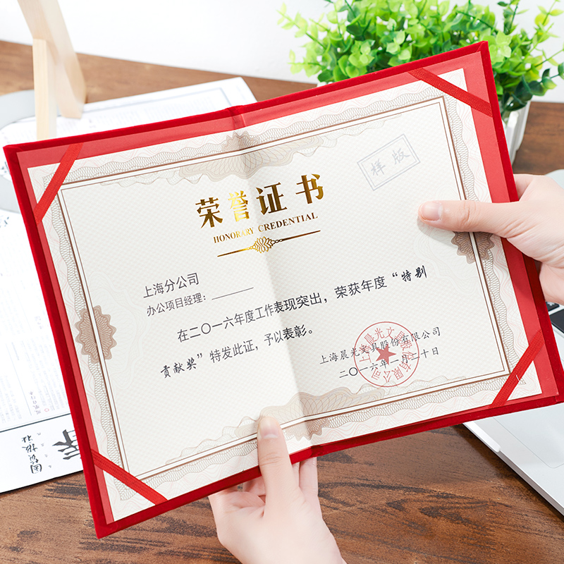 • 晨光ASC99308 尊贤绒面荣誉证书12K