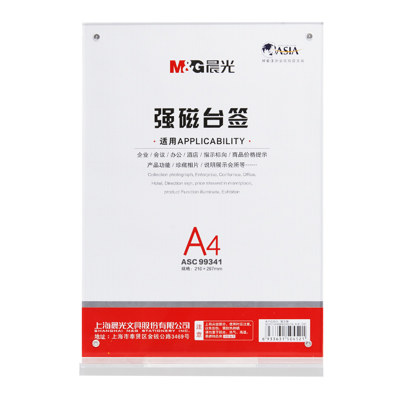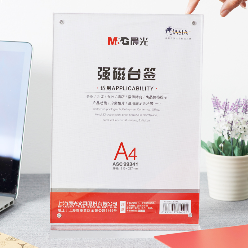 • 晨光(M&G)文具竖式T型强磁台卡 A4会议桌牌席位卡 座位牌广告展示牌 单个装ASC99341