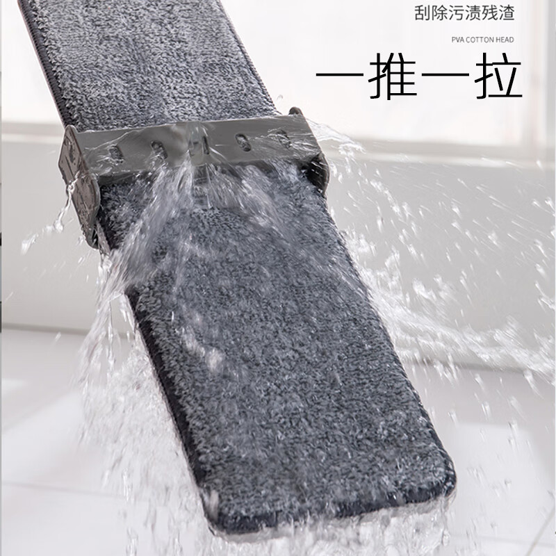 • 圣佳水芙蓉免手洗平板拖把家用拖地神器一拖净吸水拖布刮水新 F4/36cm平拖(灰白色)