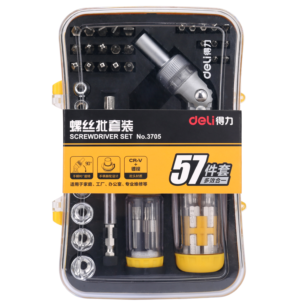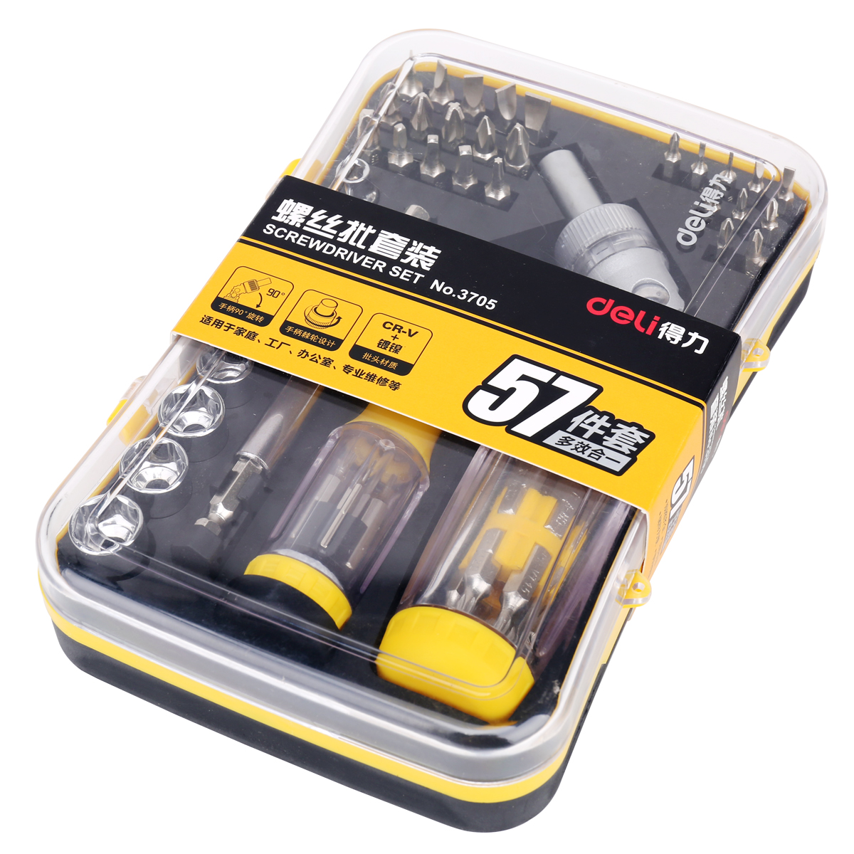 得力工具套装箱家用木工电工维修多功能手动组合螺丝刀五金套装盒 3705(螺丝刀套装57件)