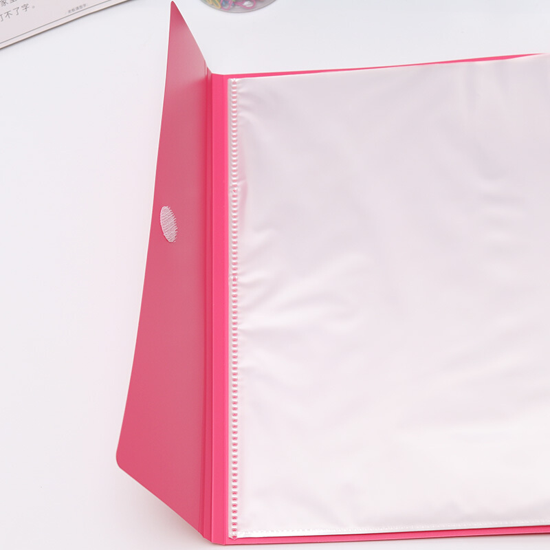 • 齐心A3122/A3/20页 资料册 可装A3尺寸 对折款学生试卷收纳册 活页插袋文件夹文件册 桃红