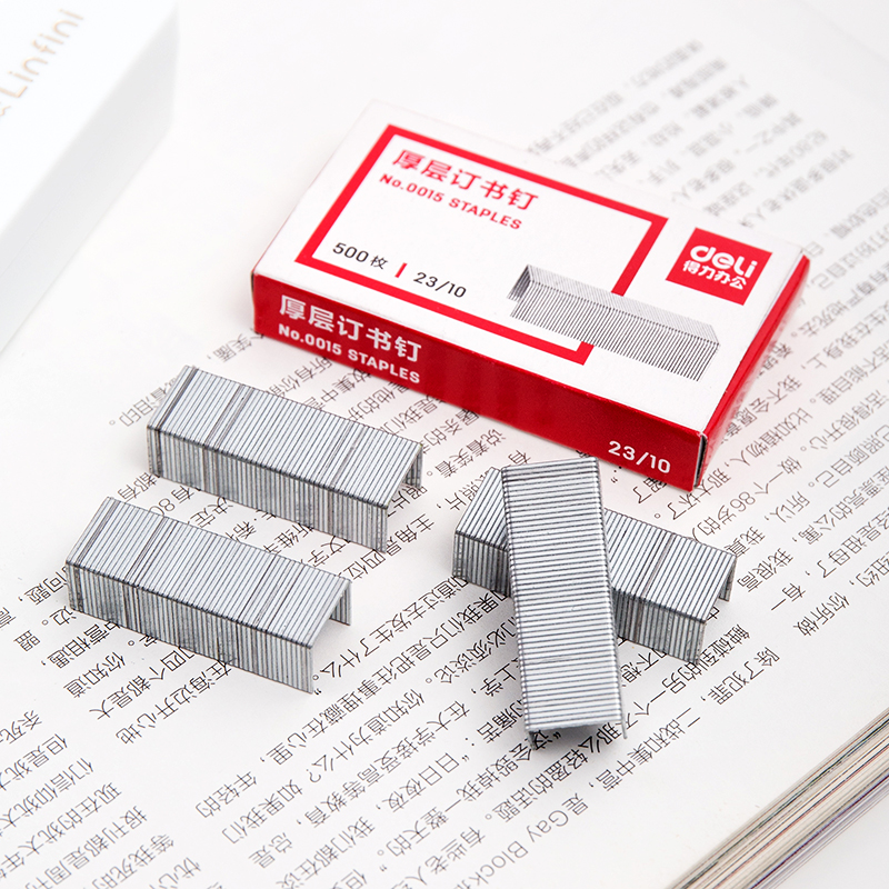 • 得力0015 23/10厚层订书钉/订书针 500枚/盒