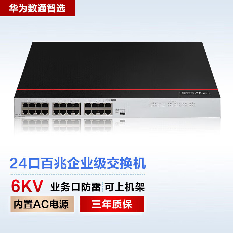 华为数通智选 S1730S-L24FR-A 交换机24口百兆企业级网络分线器分流器即插即用机架