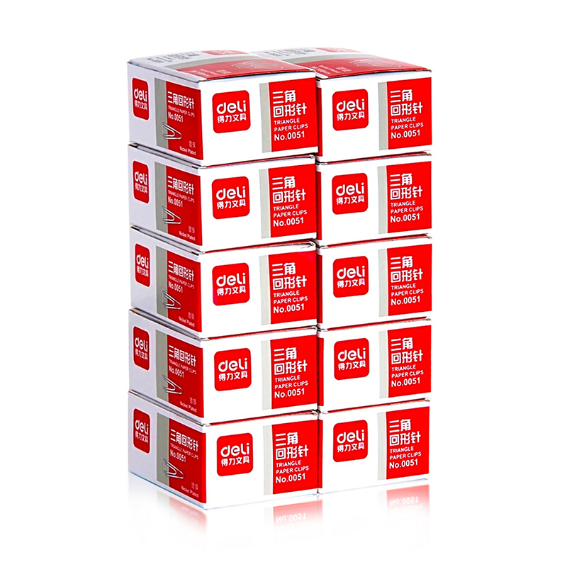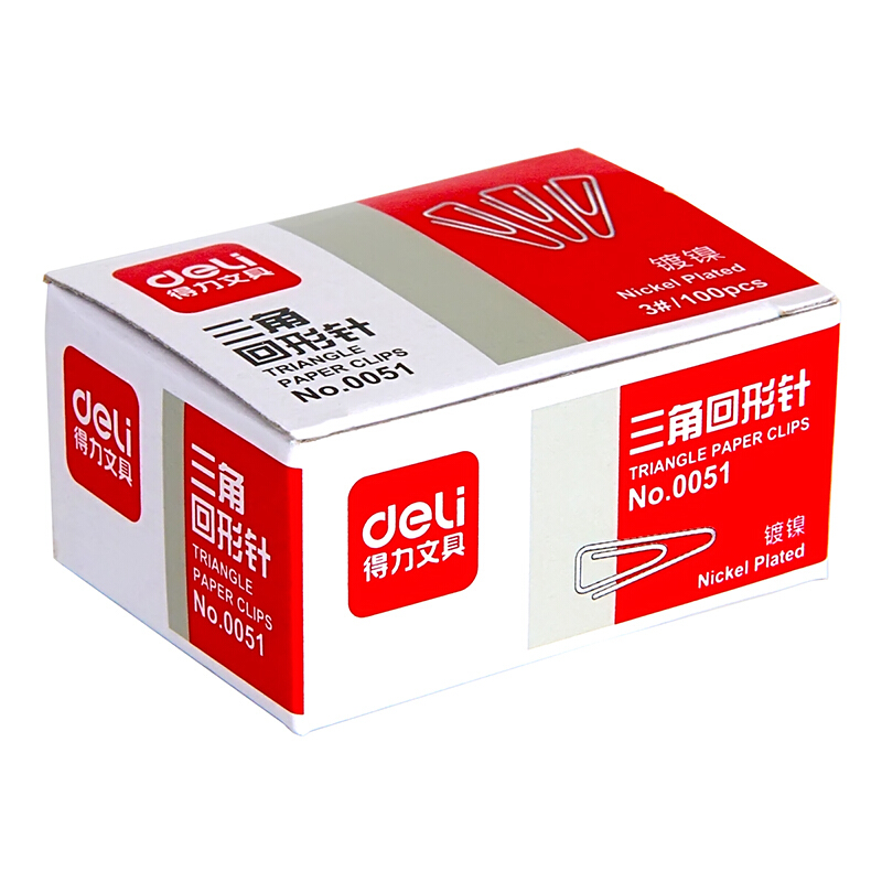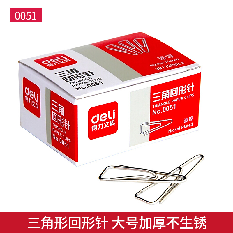 得力(deli) 0051回形针 全金属三角曲别针加厚电镀不易生锈 10盒装