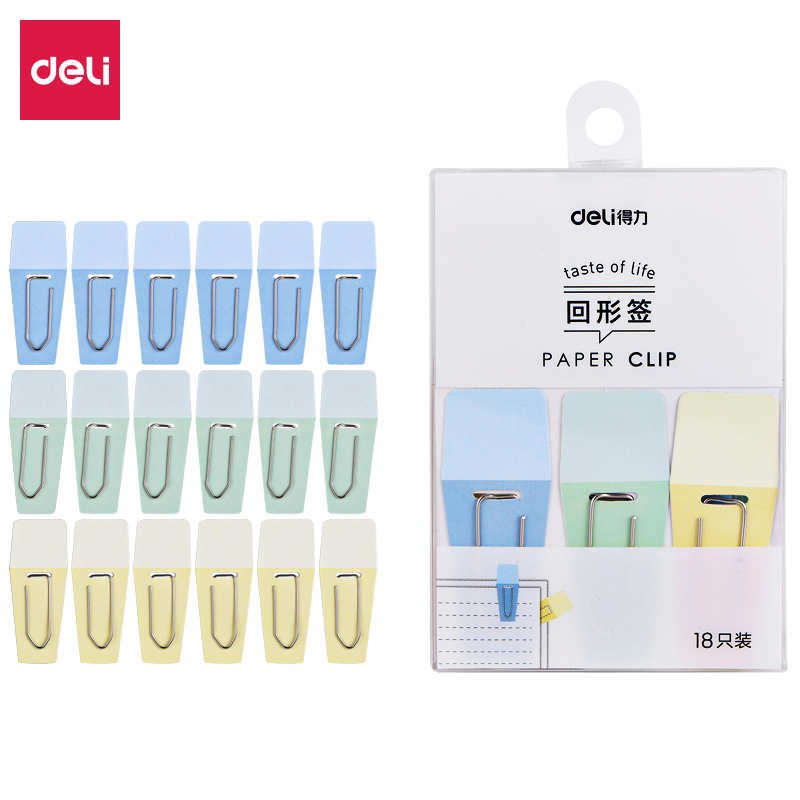 得力(deli)异性办公回形针/回形签 混装 回形签 18枚 0058