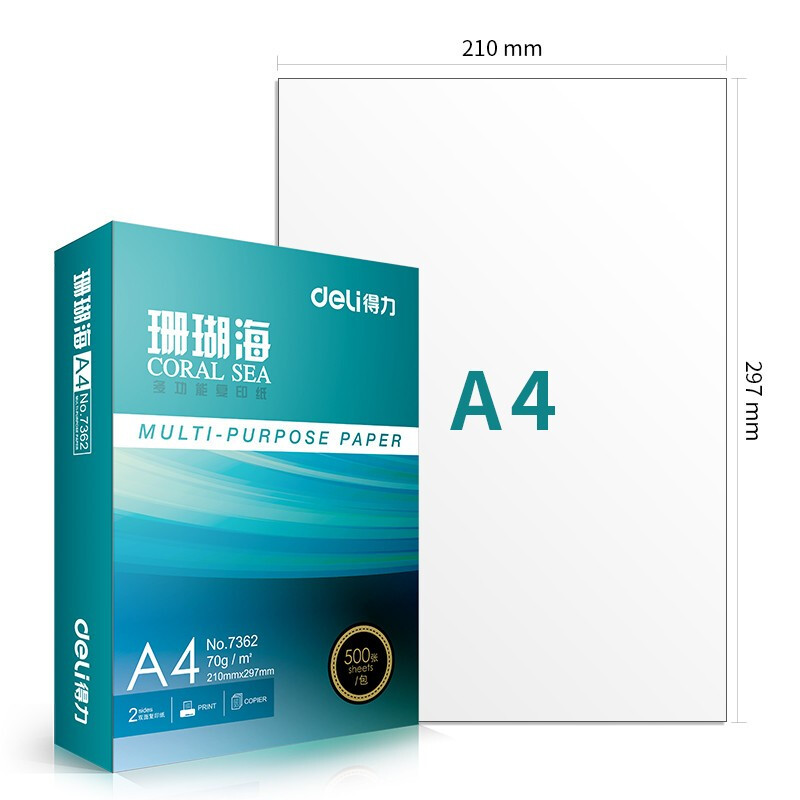 • 得力(deli)7360珊瑚海 A4 70g 双面复印纸 500张1包 单包装
