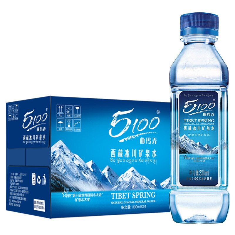 5100 西藏冰川 饮用天然矿泉水330ml*24瓶 弱碱性水 整箱装