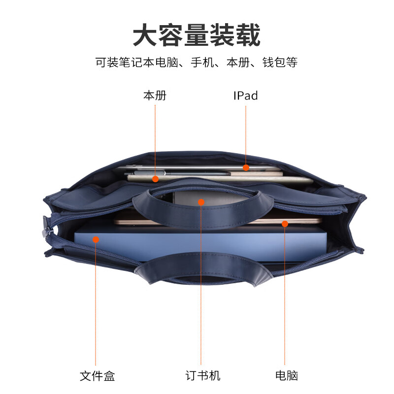 得力(deli) 加厚大容量商务拉链袋公文包 63762蓝色