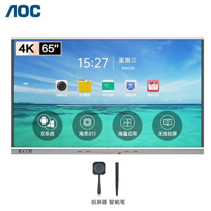 - AOC 65T31V 65英寸 4K智能会议平板电视机+投屏器+智能笔+壁挂架