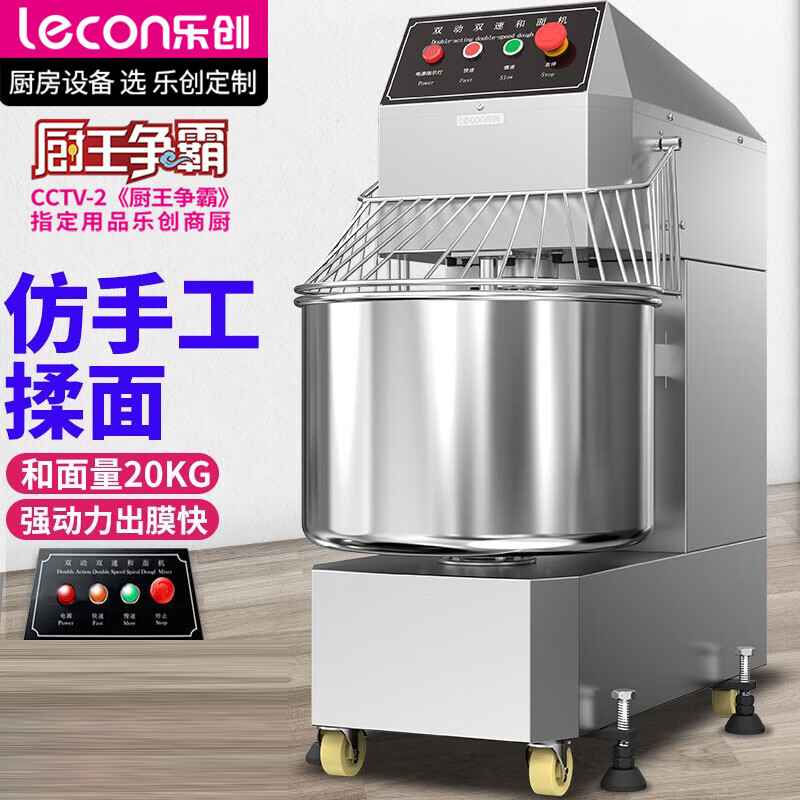 • 乐创(lecon)和面机商用 揉面机双速双动大型全自动 不锈钢多功能食堂用大容量搅拌机搅面机 60L和面机-380V(和面量7-20kg) 普通款