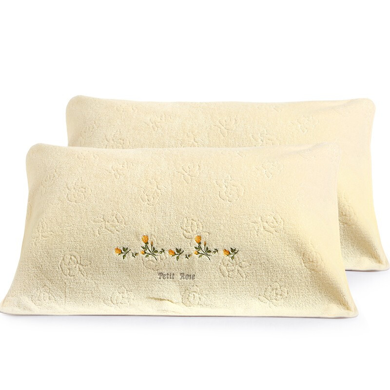 • 金号枕巾 纯棉提素螺绣枕巾一对2条装 全棉加大加厚情侣四季家用枕头巾 4201H米色一对