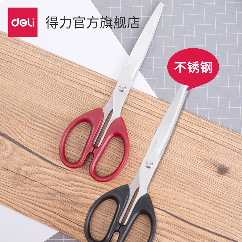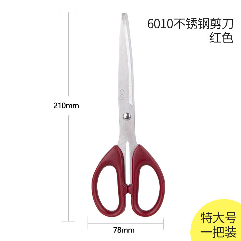 得力大号办公剪纸刀 不锈钢剪刀 家用缝纫剪刀 裁剪用品 6010(红色)特大号一把装