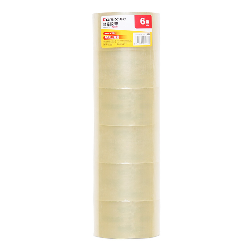 齐心(Comix) 高透明胶带6卷装 宽60mm*长91.4米/卷 封箱胶带 快递打包胶带 办公用品 JP6010-6