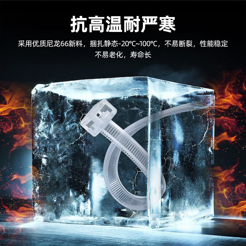 • 山泽 自锁式尼龙扎带 大号 3.6*250mm 阻燃理线带 捆扎带 束线扎线绑带 白色 100根/包 ZD-15