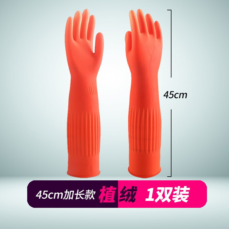 橡胶手套加长款胶皮乳胶劳保工作耐磨耐用加厚保暖加绒长一体植绒洗碗洗衣服女手套 45cm加长一体绒1双装 M(中码)