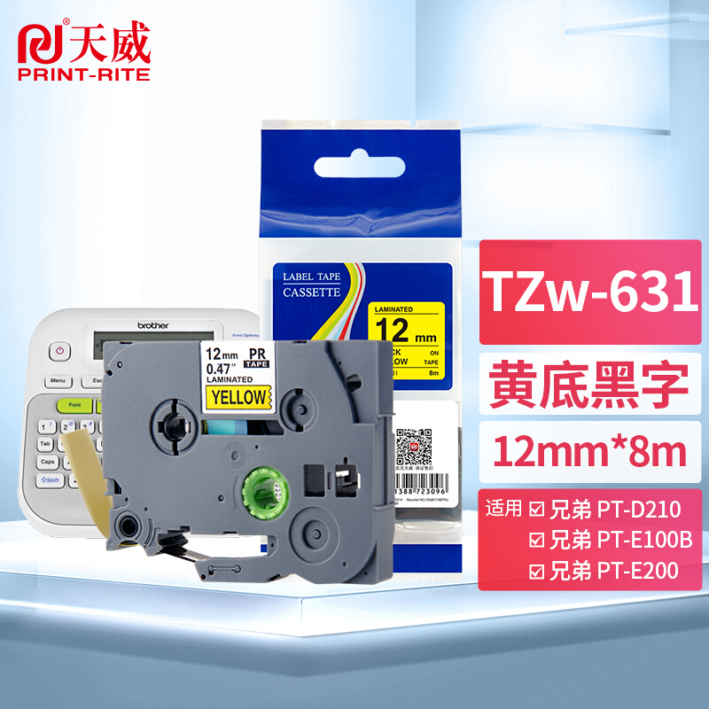• 天威Tzw-631标签色带12mm黄底黑字不干胶标签纸
